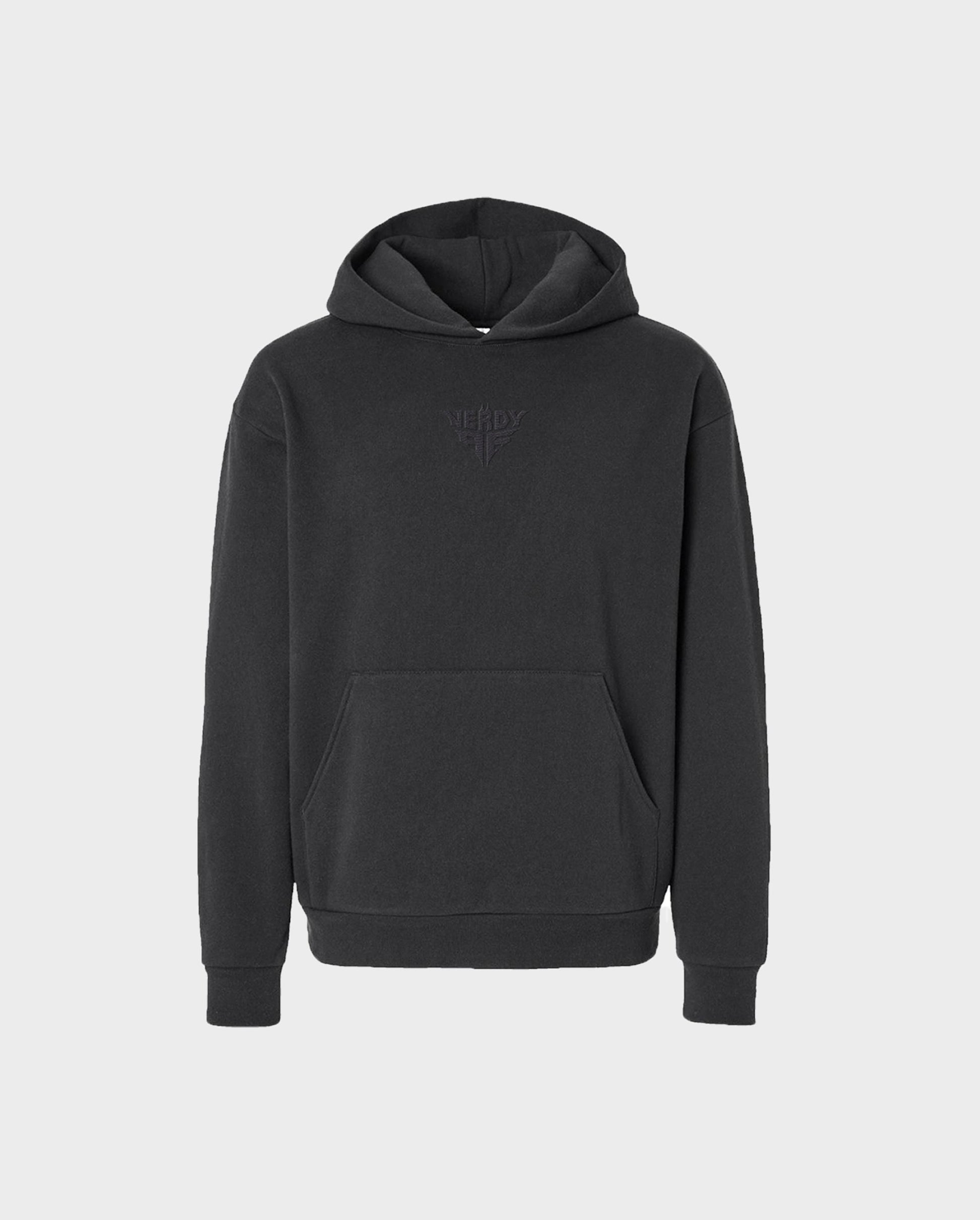 - Premium heavyweight hoodie 12.5oz with minimalistic Nerdy AF embroidered Bat logo